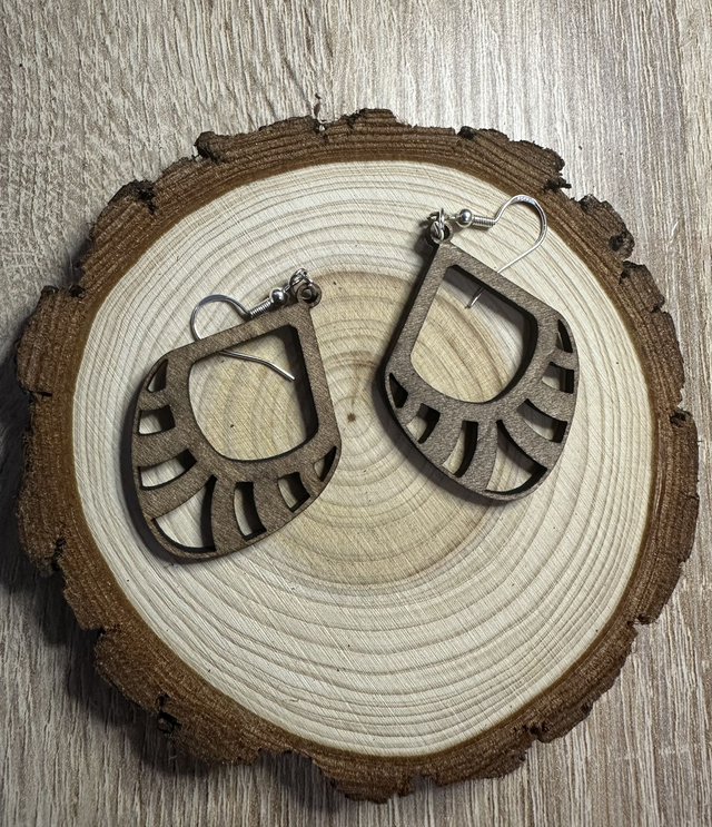 Ces boucles d'oreilles élégantes sont découpées dans un bois naturel en forme de feuille, et teintées au brou de noix. Légère et originales, elles allient la chaleur du bois et un design végétal poétique. Chaque paire est soigneusement fabriquée à la main, parfaite pour les amoureux de la nature et de l'artisanat. Un accessoire unique, à la fois sobre et expressif.