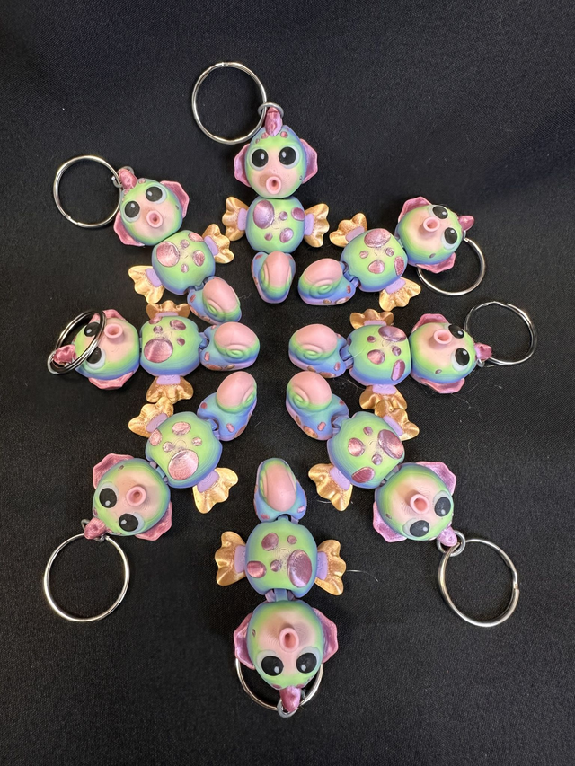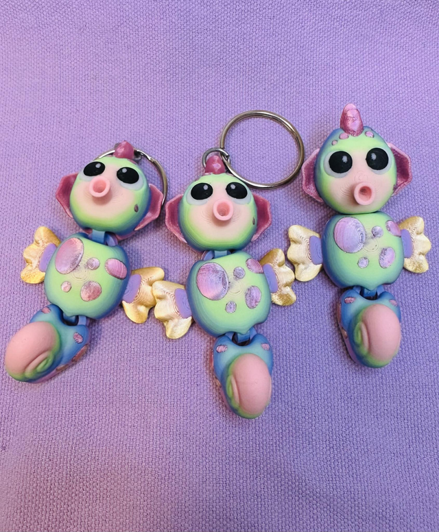 Chaque modèle est articulé, offrant une légère mobilité qui le rend vivant en agréable à manipuler. En version pin's, il apporte une touche originale et poétique à vos accessoires (sac, trousse etc) ou autre vêtements. En version porte clés, il devient un compagnon du quotidien, à accrocher à vos clés ou a un sac.