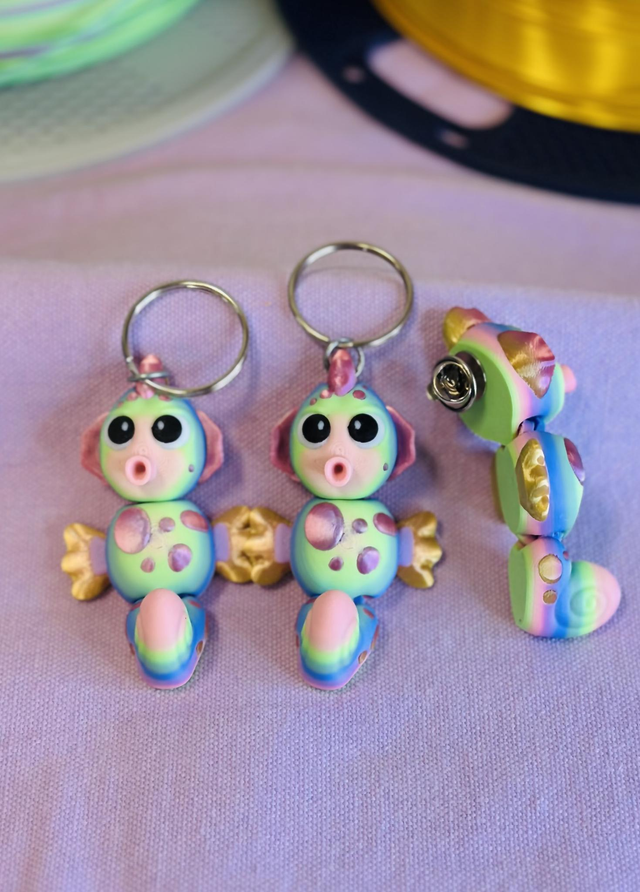 Plongez dans un univers marin enchanté avec ces hippocampes féeriques, déclinés en pin's décoratif ou en porte clés. Avec leurs couleurs pastel arc-en-ciel, leurs grands yeux expressifs et leurs petits détails dorés, ils semblent tout droit sortis d'un récif magique.