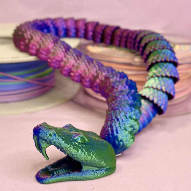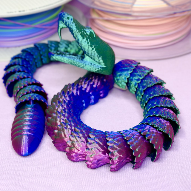 Apportez une touche originale et fascinante à votre collection avec ce serpent articulé imprimé en 3D. Entièrement conçu en une seule pièce grâce à la technologie 3D, il possède un corps segmenté qui lui permet de bouger de manière fluide et réaliste.